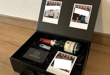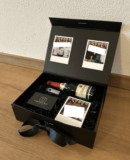 Bei der memorybox handelt es sich um eine für deine Veranstaltung individuelle Erinnerungsbox. Diese beinhaltet ausgedruckte Schnappschüsse, welche die Highlights deines Events widerspiegeln, einen USB-Stick sowie ein kleines Dankeschön.